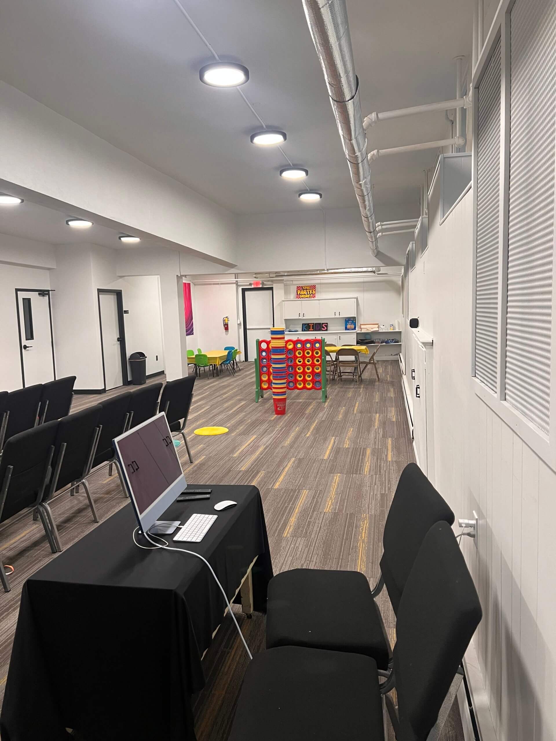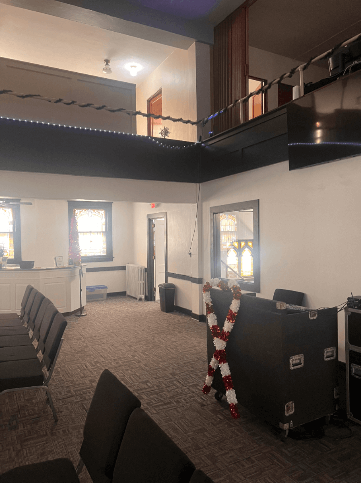 Spaces available would include the main auditorium, the cafe, some of the office cubicles in the balcony all of the restrooms and the large meeting space in the basement.